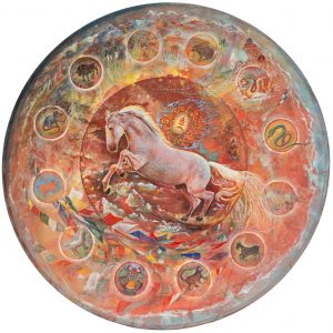 Acryl Gouache auf Kiefernholz-60 Kreis